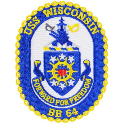 Authentic US Military USS Wisconsin BB-64 Patch featuring quality materials and craftsmanship. Ideal for military enthusiasts, collectors, and personalizing gear.