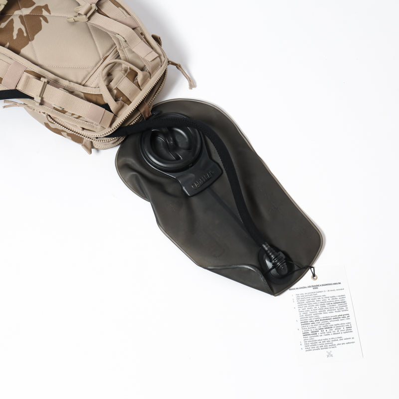 The Czech Army 3L Hydration System is a rugged military surplus hydration backpack featuring a 10 L MOLLE-compatible pack and a 3 L bladder, complete with tube routing, PVC lining, and quick-release straps. A well design hands-free hydration system for operations or outdoor activities.