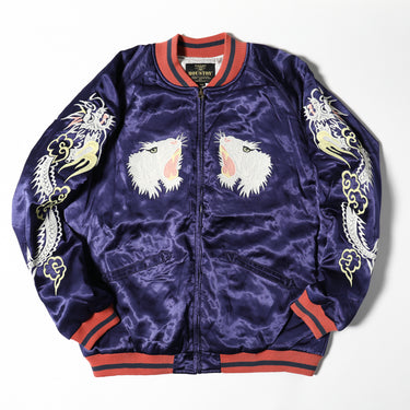 The Houston Rayon Tiger Souvenir Jacket showcases a vivid embroidered tiger on smooth, lightweight rayon fabric. Inspired by post-war Sukajan styles, it blends traditional Japanese craftsmanship with bold military flair, offering a striking and collectible statement piece for any wardrobe.