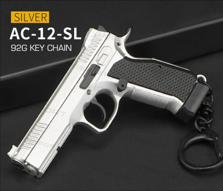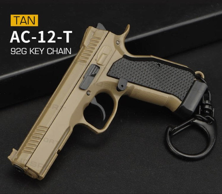 The WoSport 92G Elite Pistol Keychain is a finely detailed mini-replica of the iconic 92G Elite, crafted from durable alloy with sharp slide cuts and a key-ring attachment. Compact and collectible, it adds tactical style to keys, backpacks or gear, perfect for enthusiasts and EDC fans.