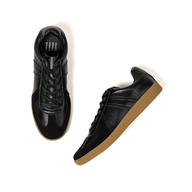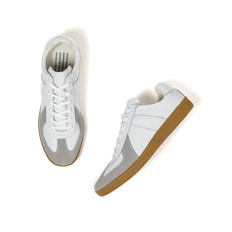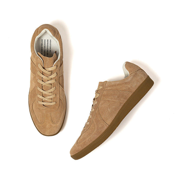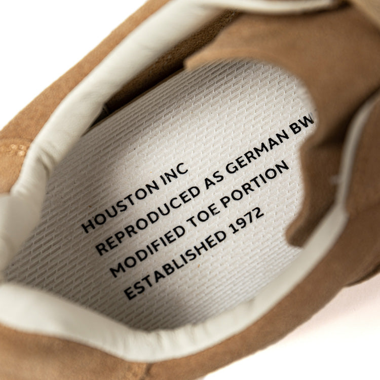 The Houston German Army Style Trainer is a vintage-inspired sneaker modeled after classic Bundeswehr footwear. Featuring a sleek leather and suede upper with a durable rubber sole, it combines military precision with everyday comfort for timeless, casual streetwear appeal.