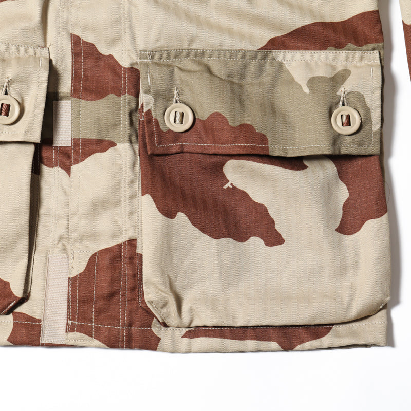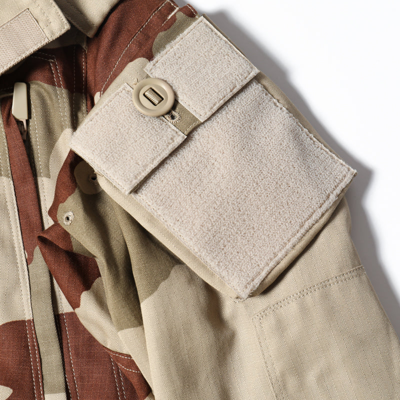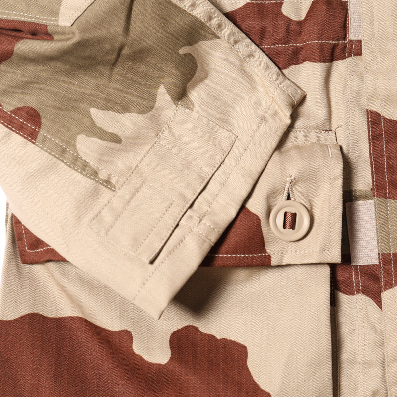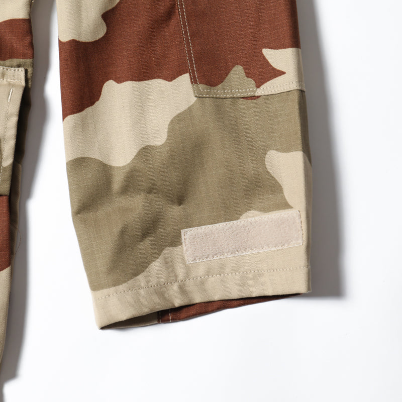 French Military Felin T4 S2 trousers in lightweight ripstop camouflage. Features cargo pockets, reinforced knees, and adjustable waist. Built for breathability, comfort, and durability in hot climates during extended field use.