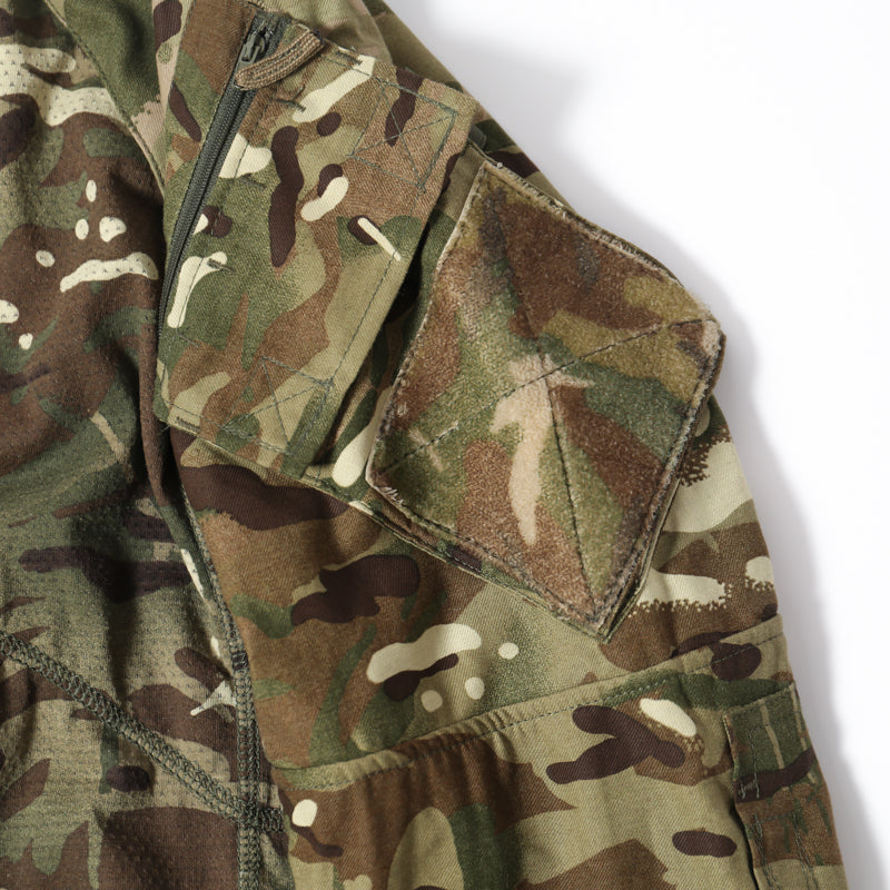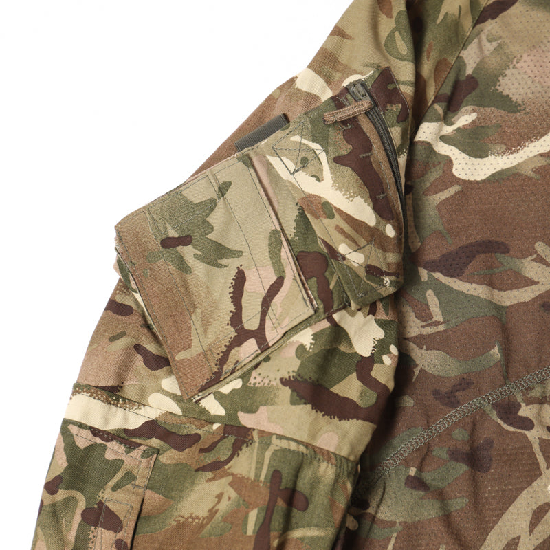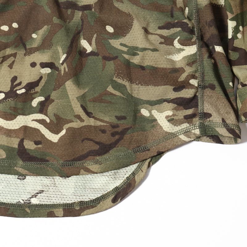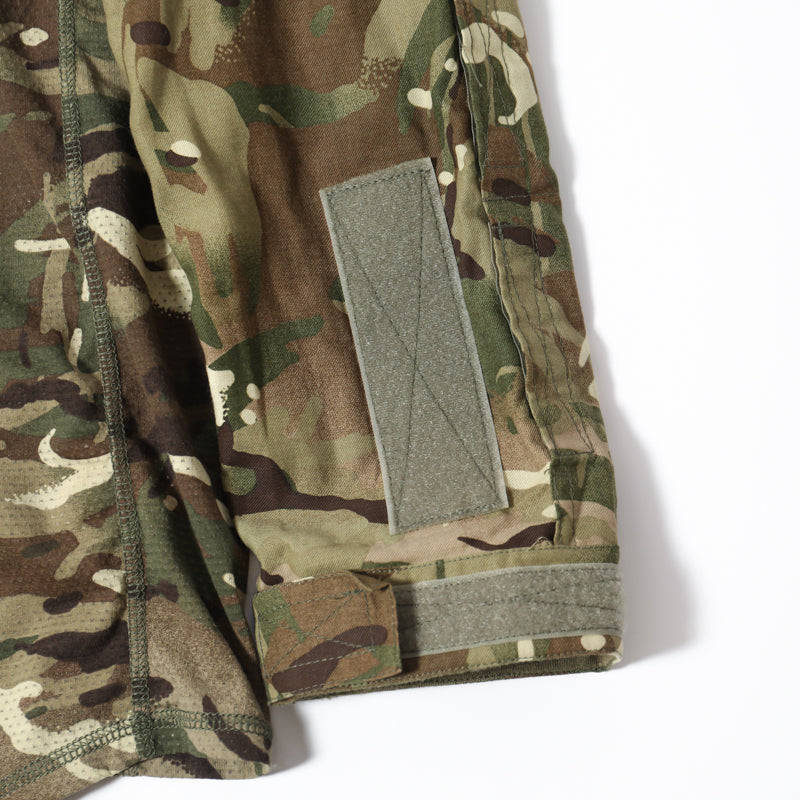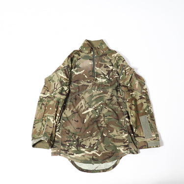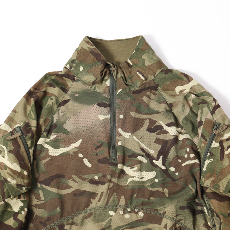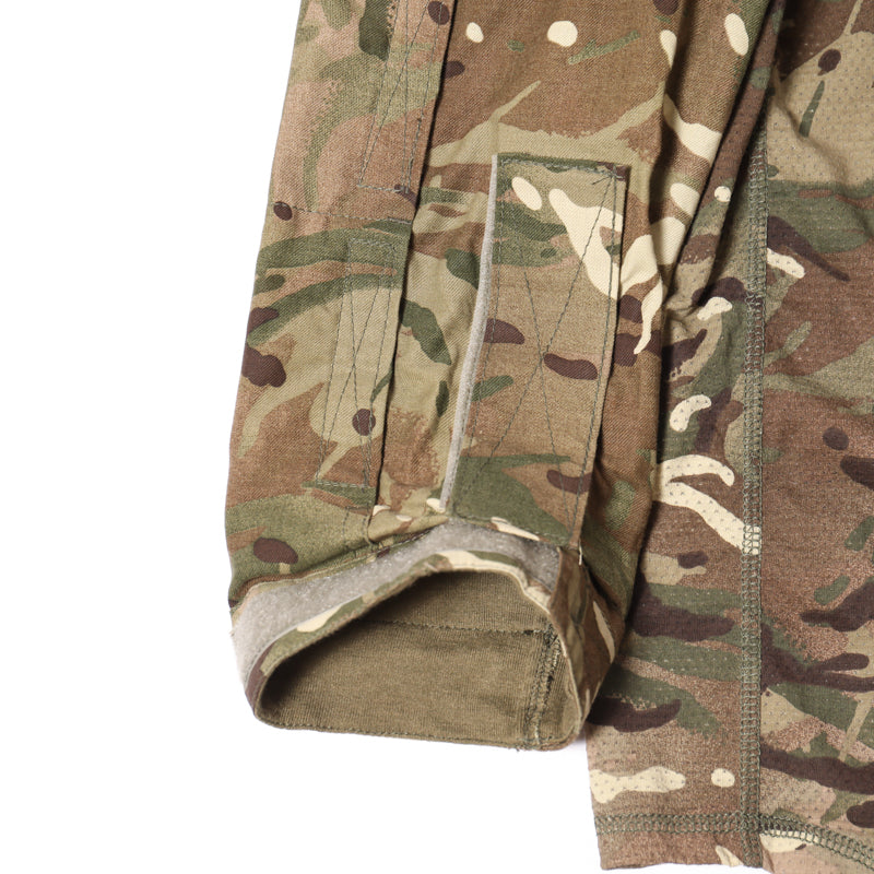 The British Army Aircrew UBACS (Under Body Armour Combat Shirt) features a moisture-wicking Coolmax torso, flame-retardant MTP body, and reinforced sleeves with elbow padding and pockets. It offers a quarter-zip collar, adjustable cuffs, and durable construction for aircrew comfort under protective gear.