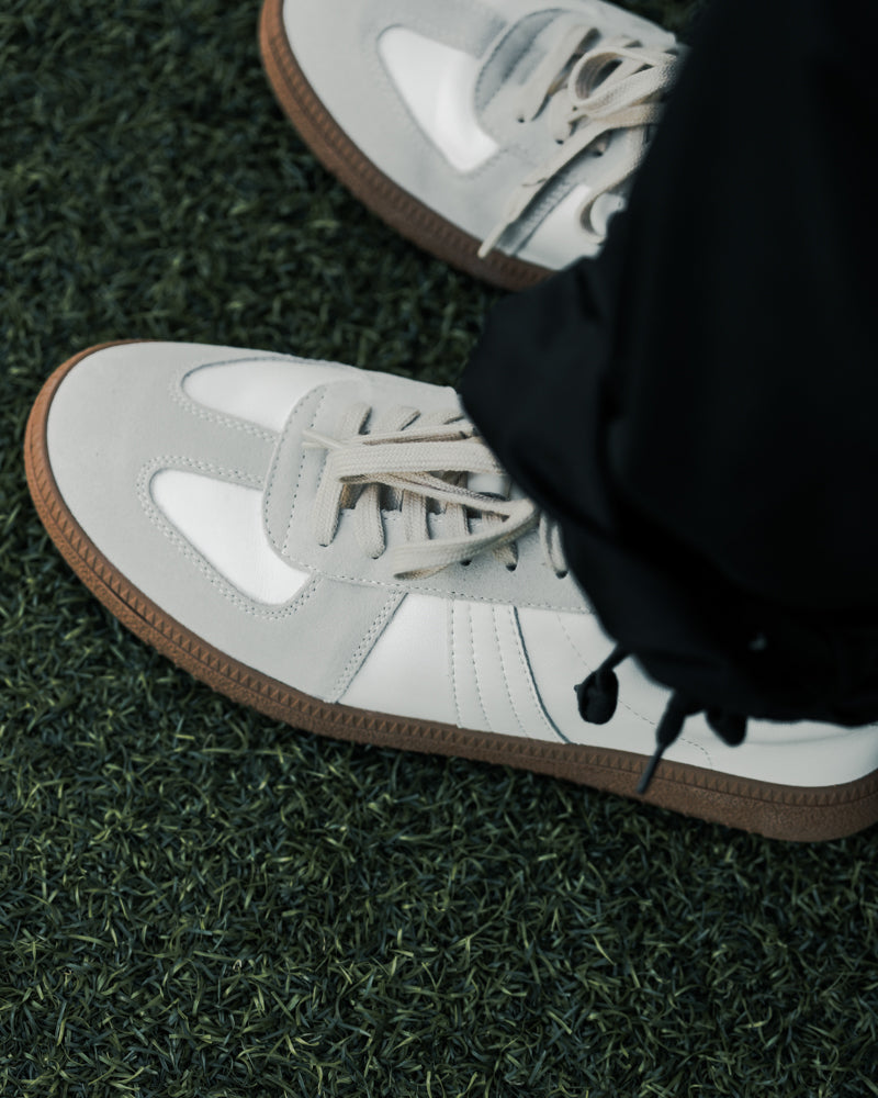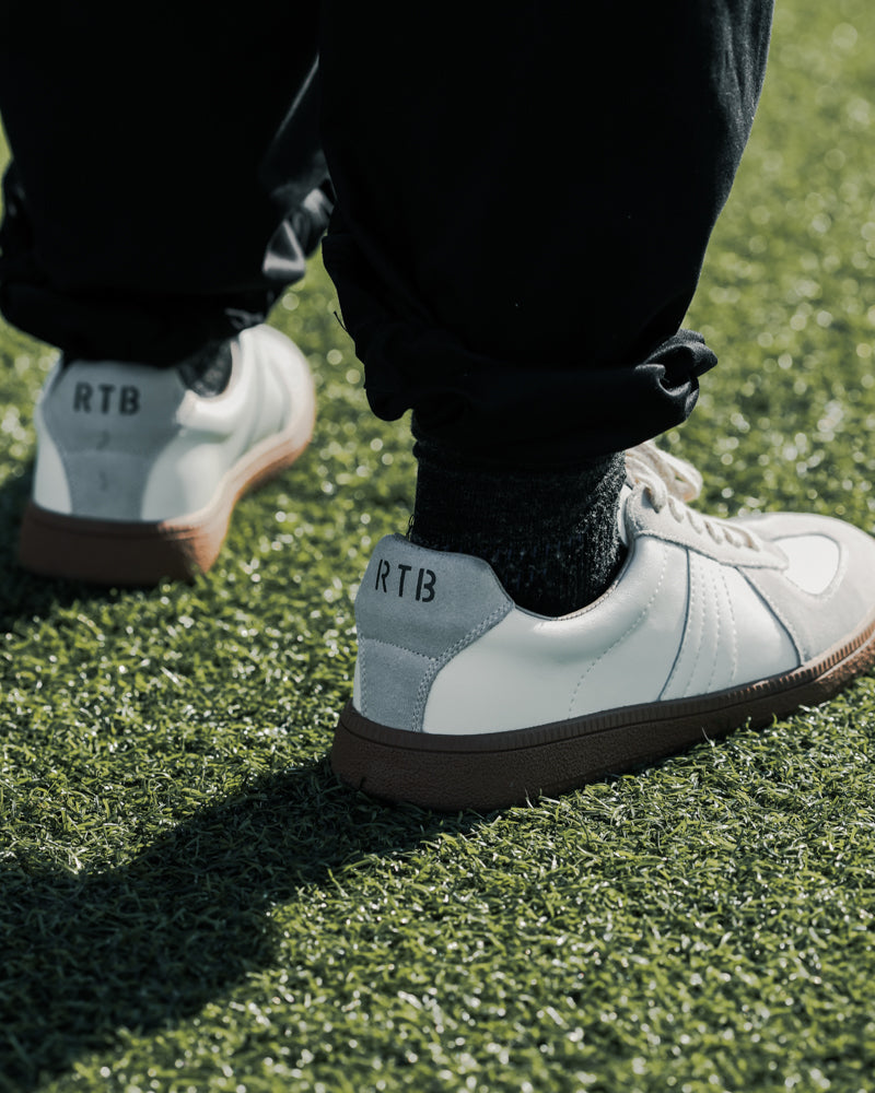 RTB The Trainer features a sleek combination of white leather and beige suede panels, offering a clean, minimalist look. Designed with a durable gum sole for traction and comfort, they’re perfect for casual wear and everyday versatility.