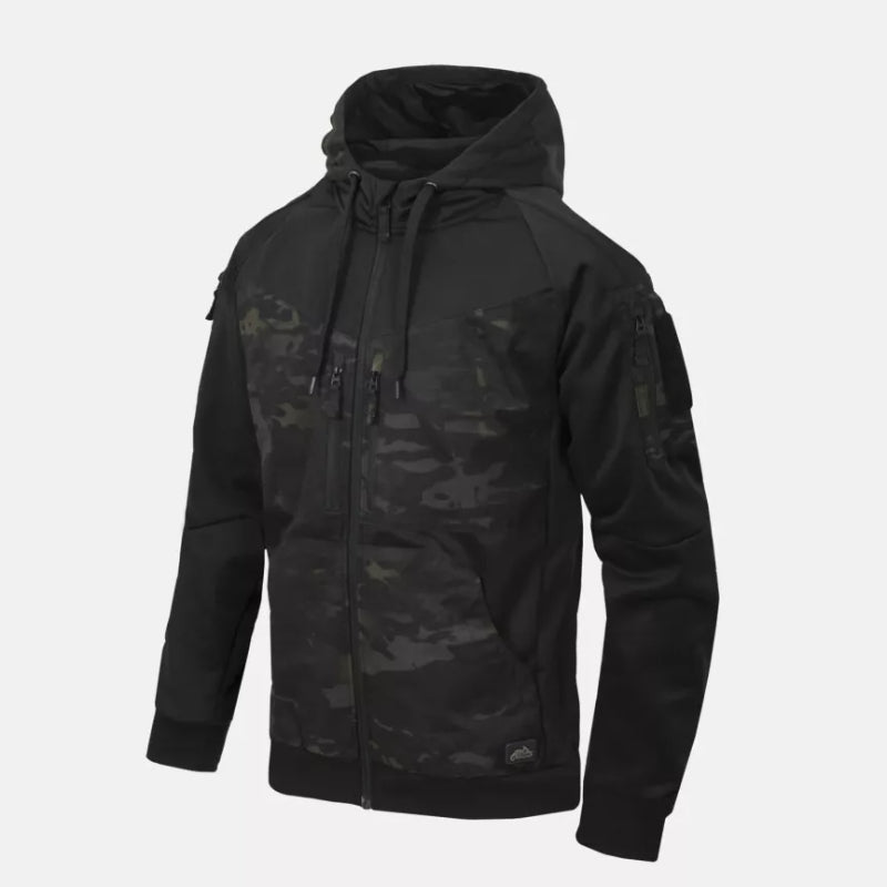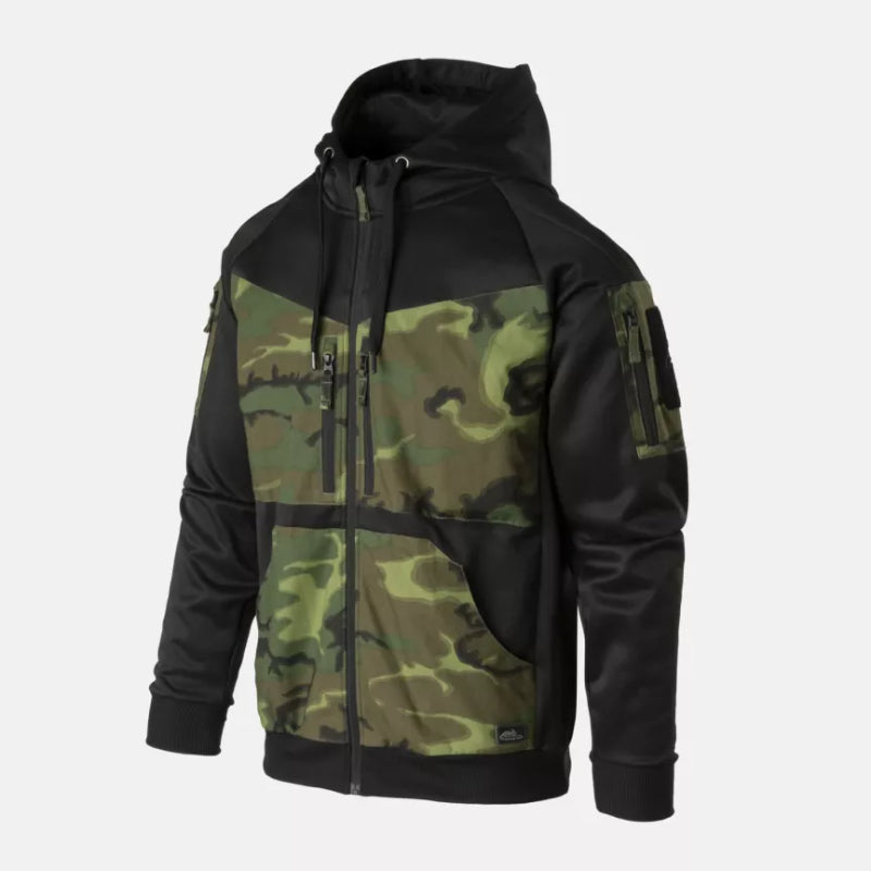 The Rogue Hoodie FullZip blends tactical durability with everyday comfort, crafted from rip-stop polyester with camouflage-pattern panels. It features a draw-string hood, elastic cuffs, and ten practical pockets for secure storage. With its relaxed fit and rugged build, it transitions effortlessly from urban wear to outdoor adventures.