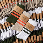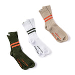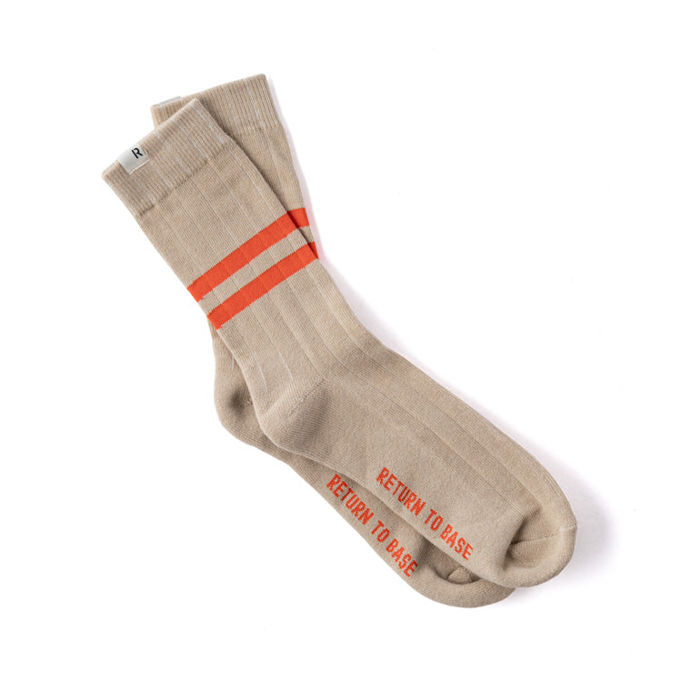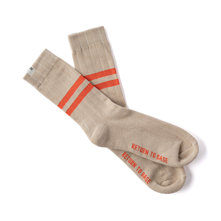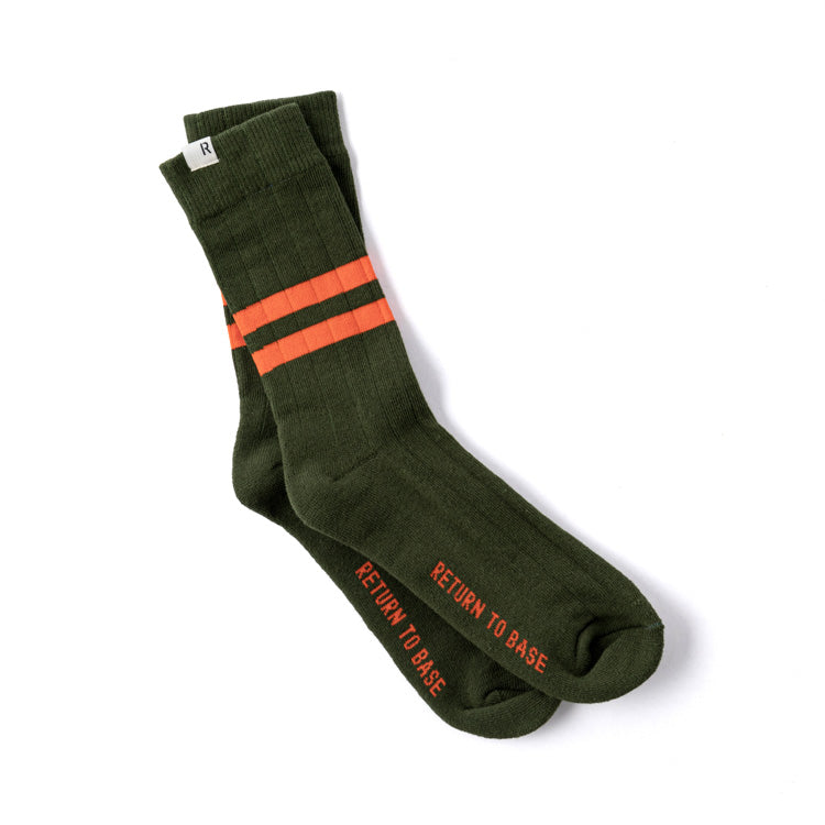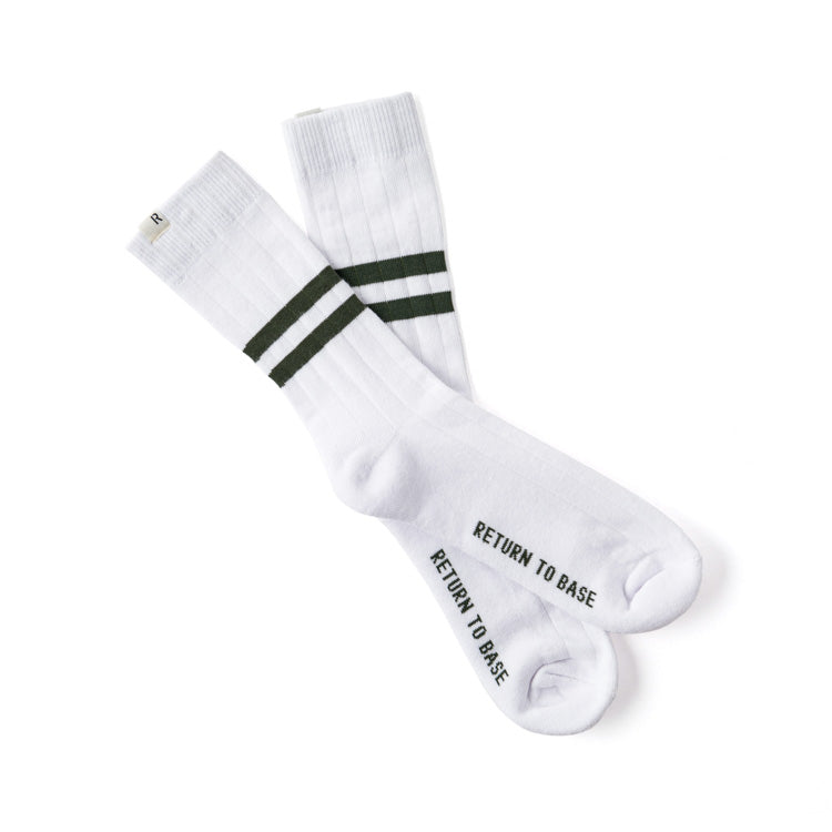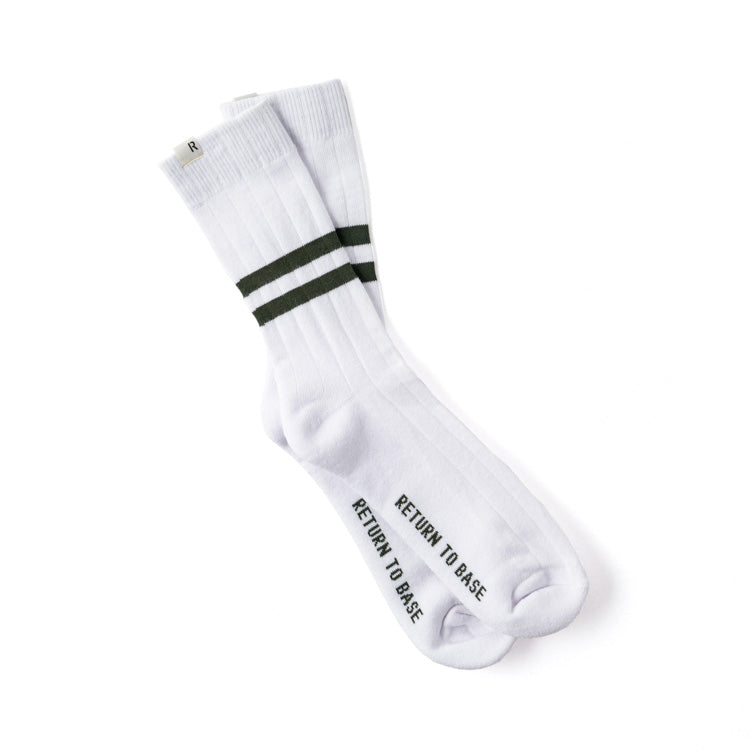 The RTB PT Style Socks combine a soft cotton-elastane blend with classic athletic styling—featuring dual top stripes and “RETURN TO BASE†branding. Available in olive drab, tan, and white, offering a one-size-fits-most fit.