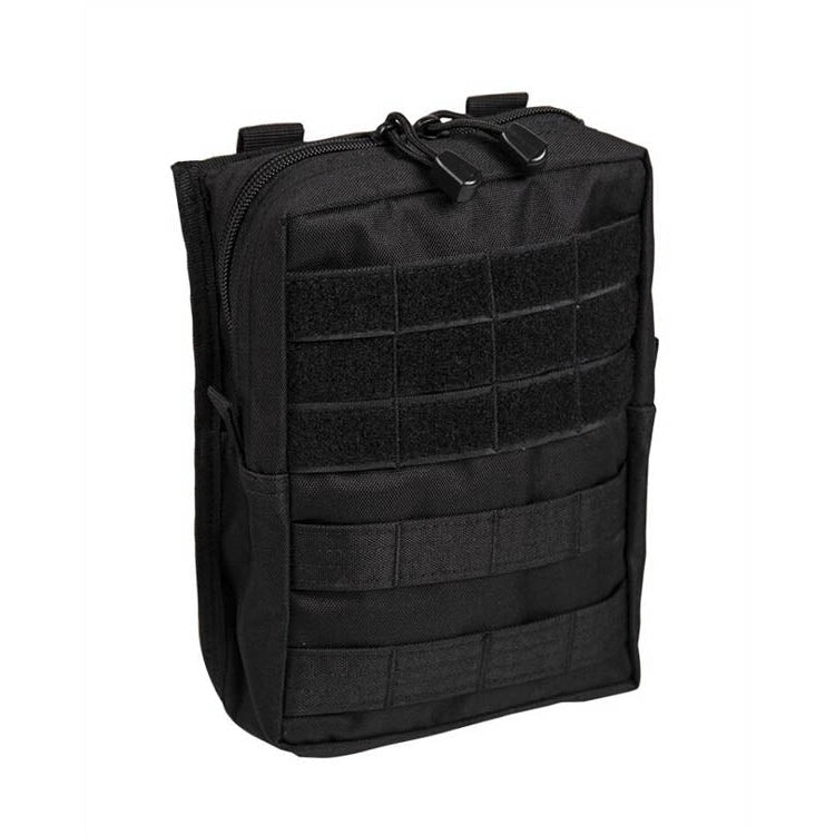 Crafted from rugged Oxford polyester with a PVC coating, this MOLLE-compatible belt pouch offers a two-way zipper entry, front hook‑and‑loop patch panel, internal elastic bands, and a drainage eyelet. It mounts securely via MOLLE straps and snap buttons for versatile gear access.