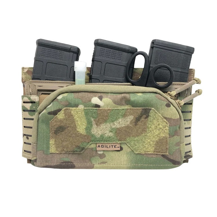 This low-profile admin pouch flawlessly attaches to the front of the Agilite Pincer Placard, adding organized storage via internal compartments and hook‑and‑loop panel. Dual laser-cut MOLLE side panels allow accessories, while internal elastic loops hold pens, chemlights, and shears securely.