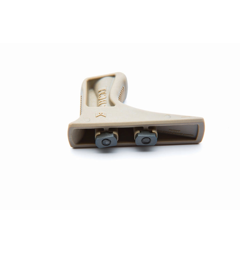 Designed to complement modern shooting grips, the Kinesthetic Angled Grip (KAG) uses a biomechanically efficient forward rake to create an interface for positive retention and joint relief to the wrist, elbow, and shoulder, allowing for smooth weapon manipulation without substantial increase to the girth of the weapon system. Textured on both front and back, the profile of the KAG creates a channel for consistent and positive engagement which translates directly into improved efficiency in weapons manipulation and target to target transitions.