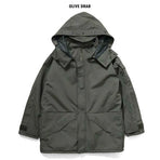 The Houston ECWCS Detachable Hood Parka blends rugged outdoor utility with mid-century military styling. Built with a waterproof, wind-resistant shell, it features a detachable hood for versatility, multiple reinforced pockets for gear, and a tailored fit that works equally well for field wear or urban layering.