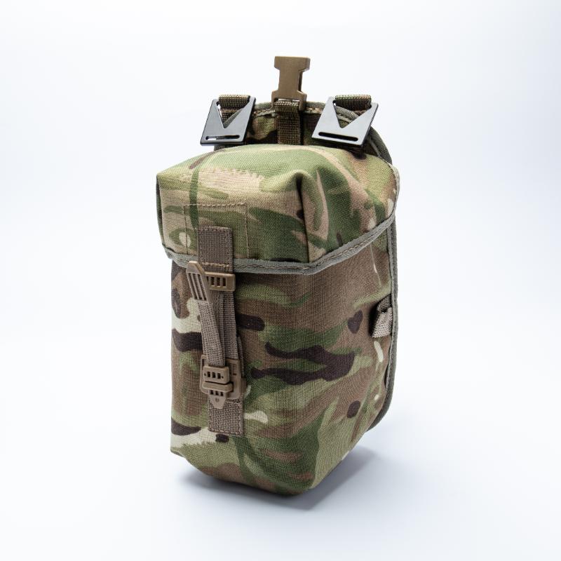 Versatile utility pouch for PLCE webbing systems. MOLLE-compatible, designed for carrying tools, small equipment, or personal items securely during military operations, camping, or outdoor activities.