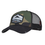 Stylish trucker cap with breathable mesh back and Pentagon branding. Comfortable, adjustable fit for range, casual, or outdoor wear.