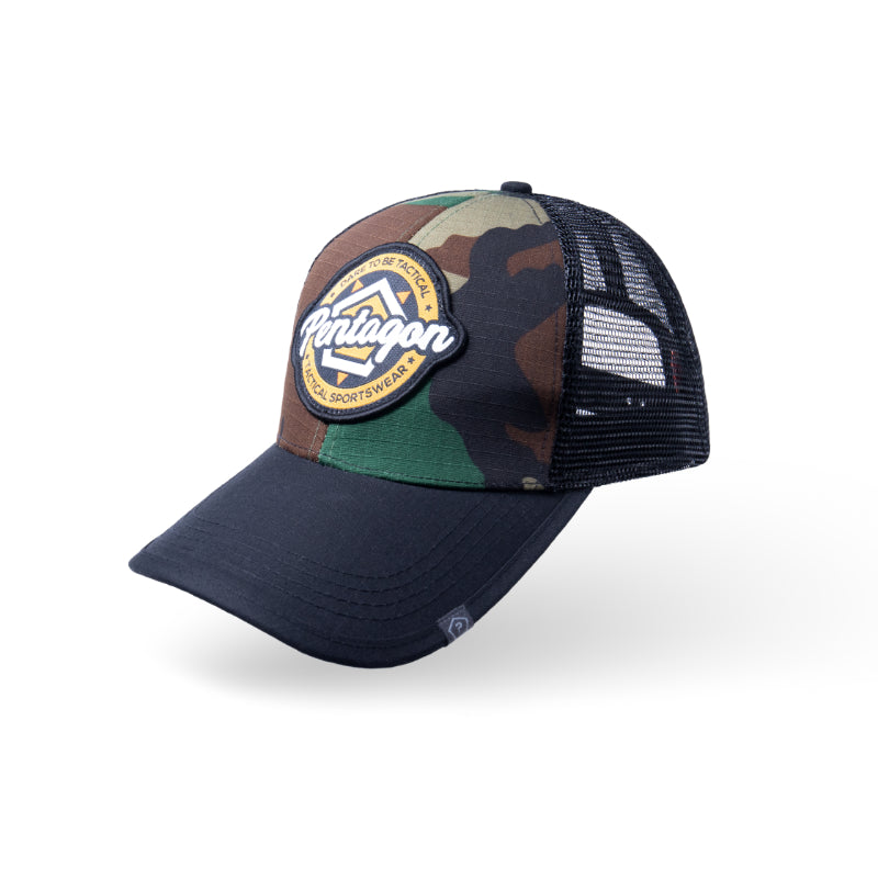 Classic trucker cap featuring Pentagon Tactical design. Lightweight, adjustable, and comfortable. Ideal for casual wear or range days.