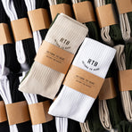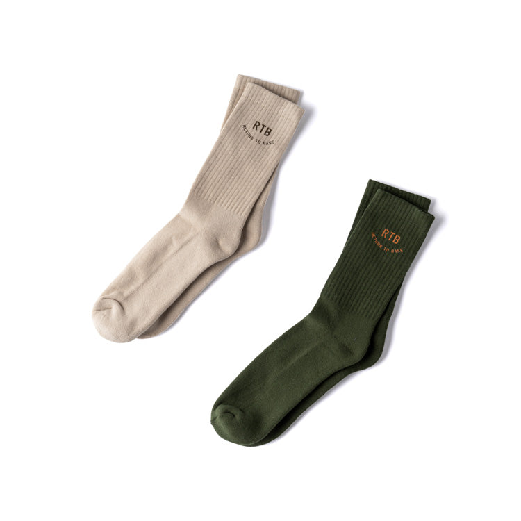 Elevate your sock drawer with this duo of RTB logo crew socks. Crafted from soft, stretchy cotton-elastane, each pair features minimalist branding in two-tone colorways: black/white or olive drab/tan for stylish comfort during everyday wear or light physical activity.