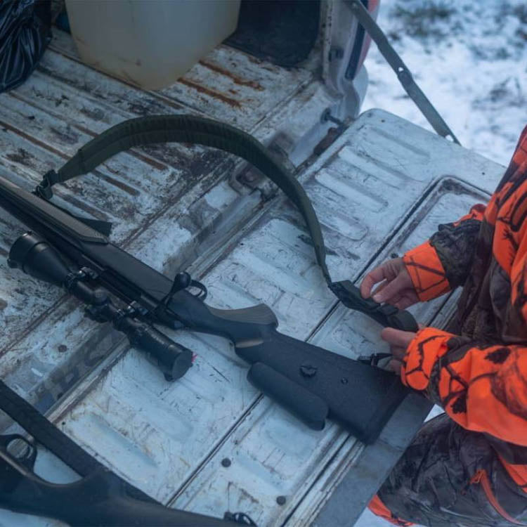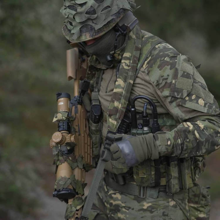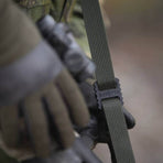 Effective and reliable two-point sling. The extra thick and wide sewn-on pad is designed for carrying heavy small arms such as LMGs and sniper rifles.